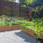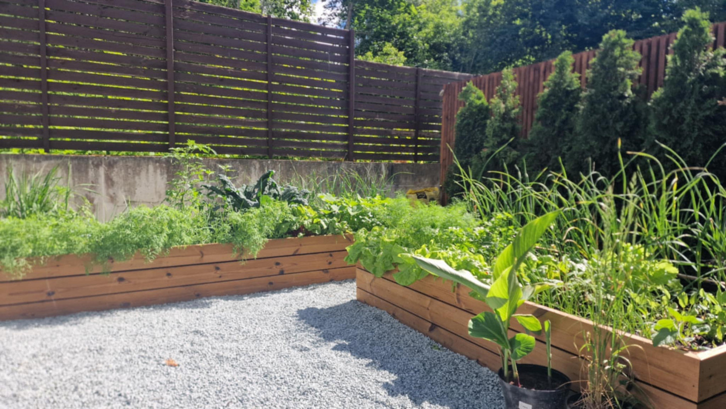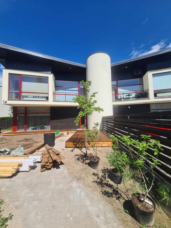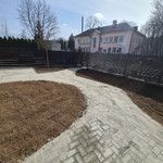 Buvo atliktas pilnas kiemo planiravimas, nes turėjome probelmų su vandens sankaupom. Todėl vyrai parengė projektą su antplitudėm, sutvarkė nuolydžius ir perklojo trinkeles. Buvome pasirinke architektą kuriuo nelabai buvome patenkinti, bet Mantas pasiūlė sprendimą pakeisdamas pavesinės konstruktyvą. Atsižvelgė į mūsų estetikos pageidavimus, ir išsprendė situaciją. Tolimesni darbai - pakeltos betoninės lysvės, ruloninė vėja, akustinė sienelė, želdinimas. Projektas nebuvo lengvas, bet vyrai puikiai spręsdavo susidariusias situacijas. Reziume likome patenkinti atliktais darbais. Lauksime terasos, ir pavesinės alyvavimo. Ačiū