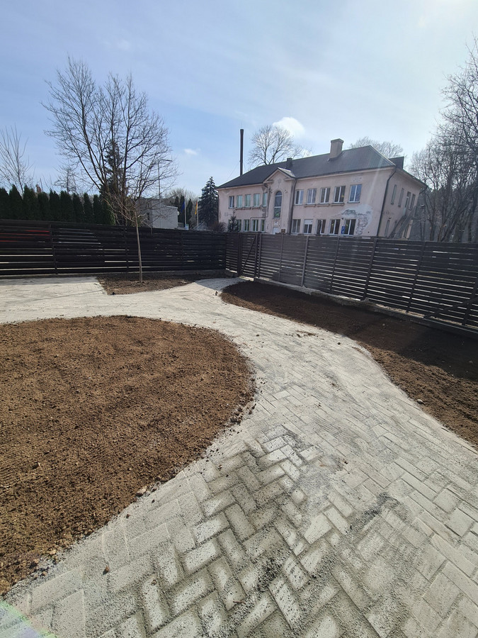 Buvo atliktas pilnas kiemo planiravimas, nes turėjome probelmų su vandens sankaupom. Todėl vyrai parengė projektą su antplitudėm, sutvarkė nuolydžius ir perklojo trinkeles. Buvome pasirinke architektą kuriuo nelabai buvome patenkinti, bet Mantas pasiūlė sprendimą pakeisdamas pave...