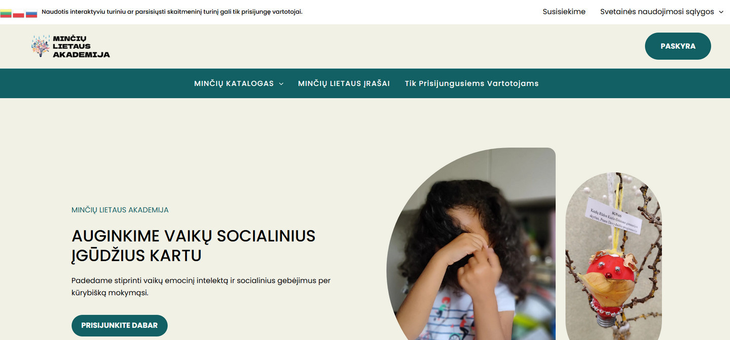 Įgyvendintos funkcijos, tokios kaip nemokamas turinio atsisiuntimas, apribota prieiga pagal vartotojo rolę, H5P užduočių kūrimas be wp-admin, – tai ne tik inovatyvu, bet ir labai patogu mūsų tiksliniam naudotojui. Visas dizainas išlaikė mūsų vizualinę tapatybę, o svetainė veikia greitai, saugiai ir atrodo profesionaliai tiek kompiuteryje, tiek telefone.