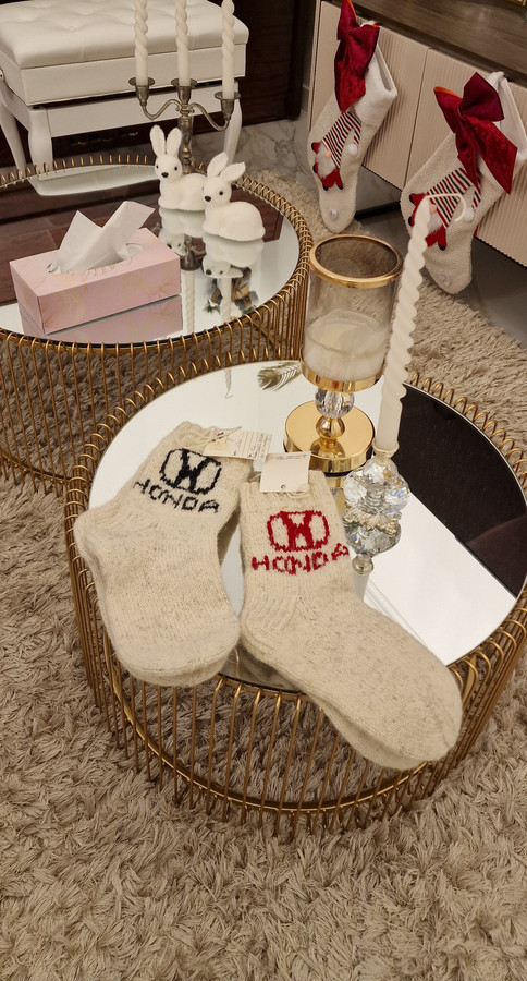 Mezgu vilnones kojines iš įvairių siūlų, taip pat iš natūraliai augalais dažytos vilnos. Galimi individualūs užsakymai – dydžiai, spalvos, raštai. Rankų darbas.